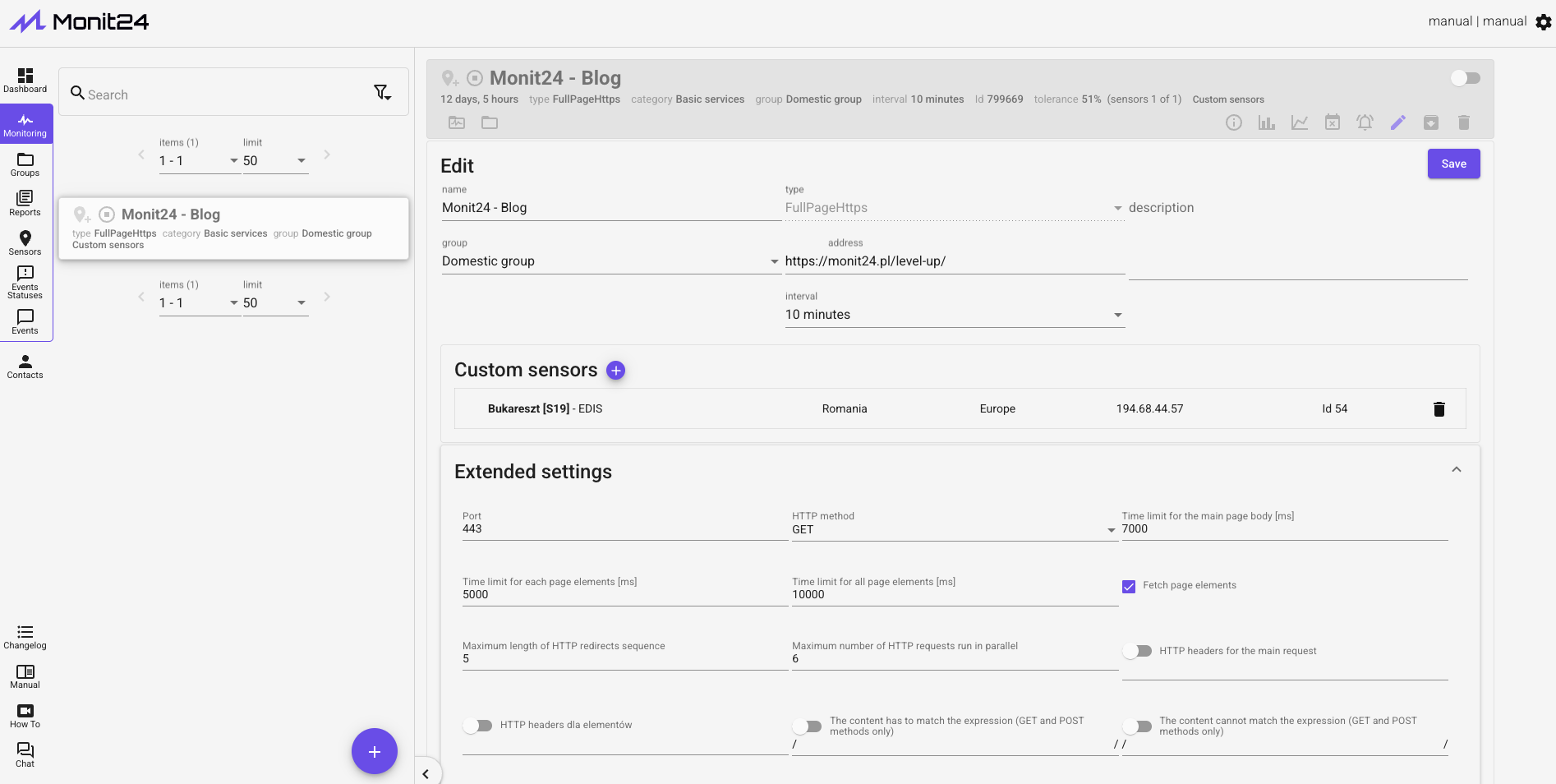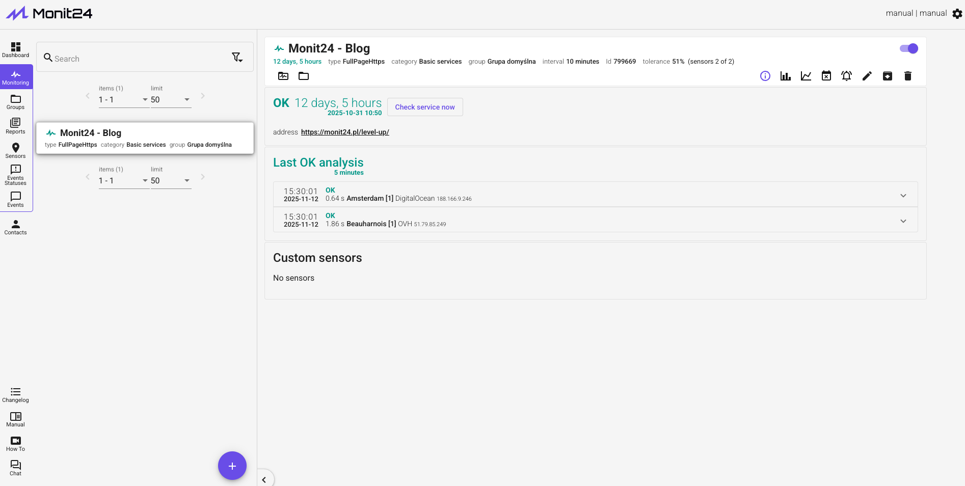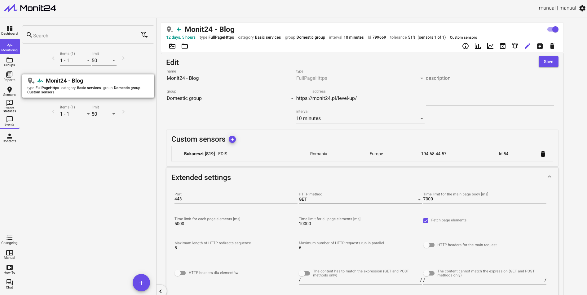 Usługa przeznaczona jest do monitorowania dostępności serwera z różnych (wybranych) lokalizacji.