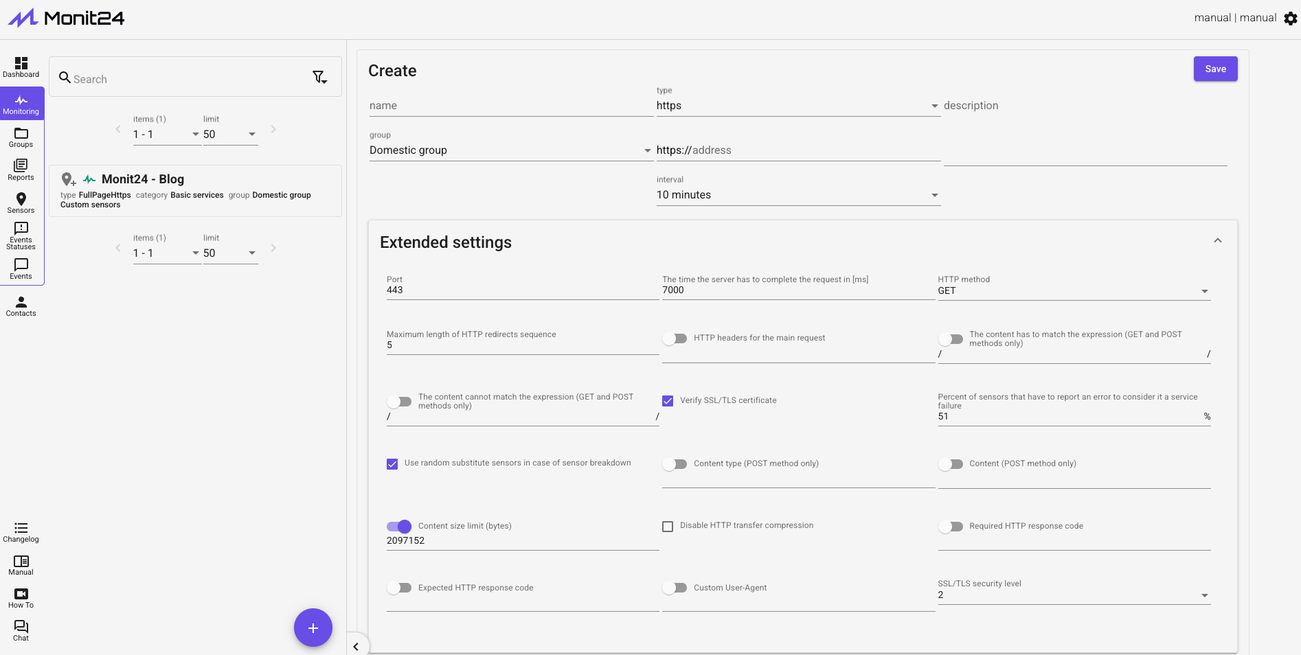 - Typ usługi – domyślnie HTTP, czyli sprawdzanie stron internetowych. Wybrany typ określa, co będzie monitorowane;