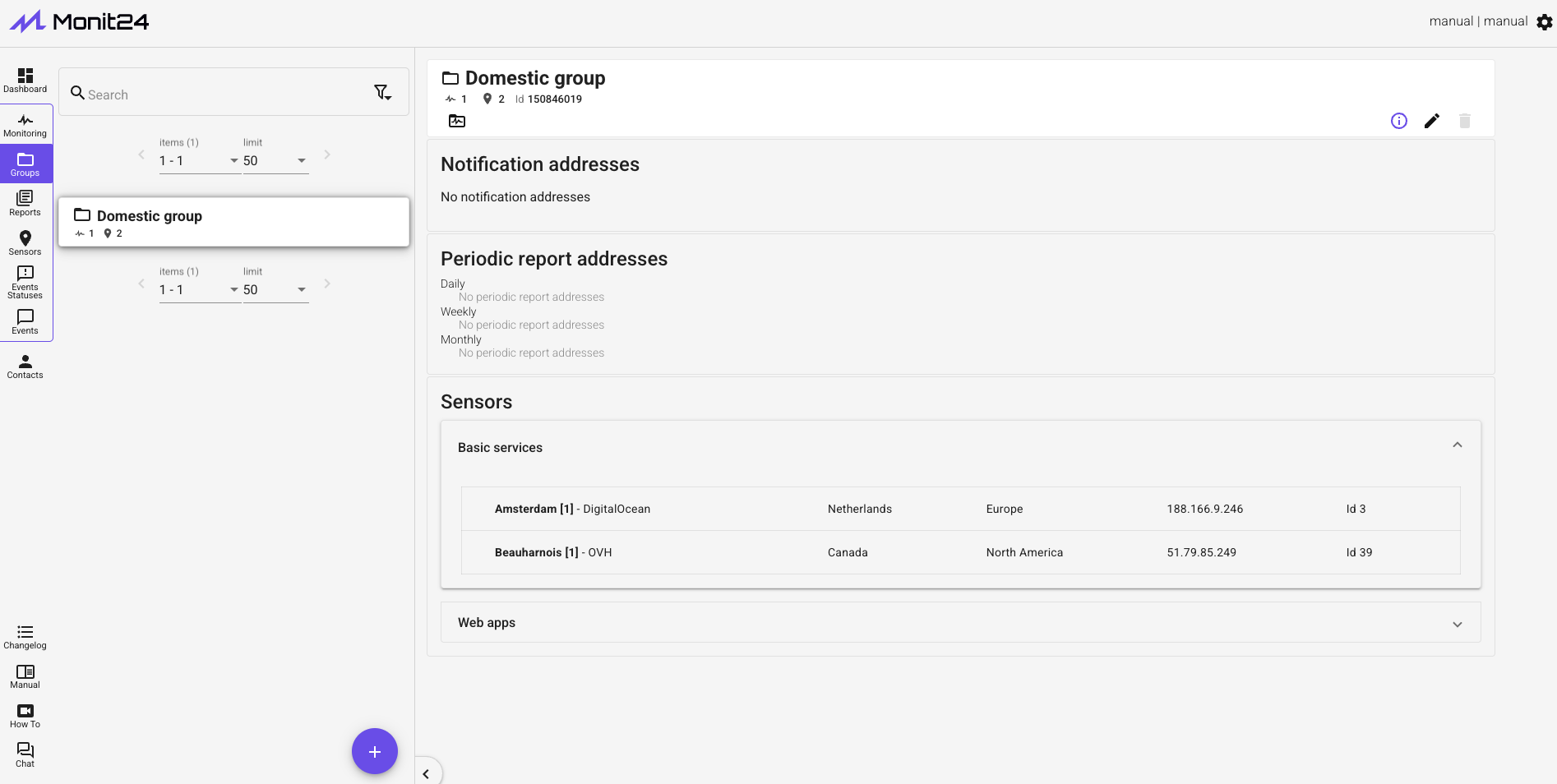 Grupa domyślna – jest grupą tworzoną automatycznie przez system i nie może zostać skasowana; jest możliwe jednak przeniesienie wszystkich usług poza Grupę Domyślną, co w efekcie daje możliwść, na przykład, wykluczenia jej z raportów okresowych.
