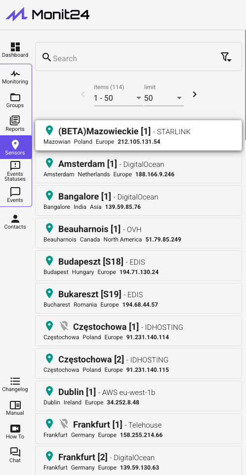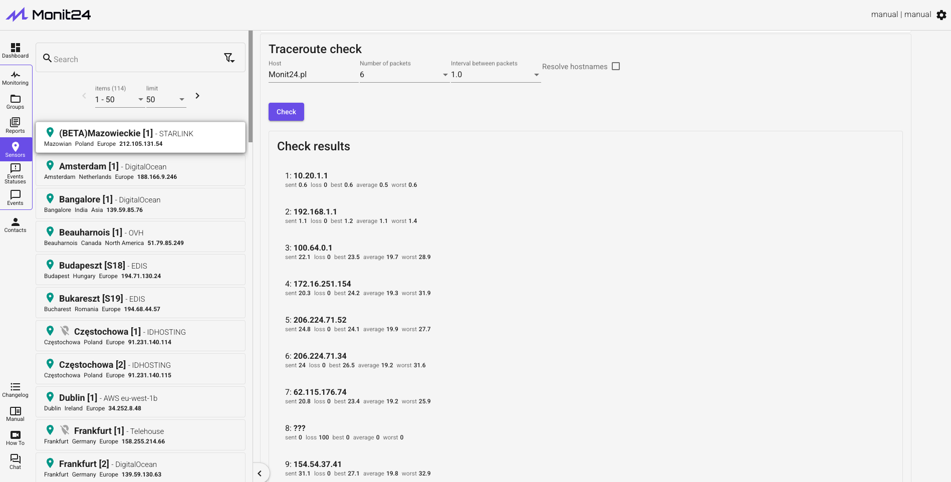 Monit24.pl oferuje możliwość wykonywania sprawdzeń ze stacji na wszystkich kontynentach i przy wykorzystaniu różnych operatorów i dostawców internetu.